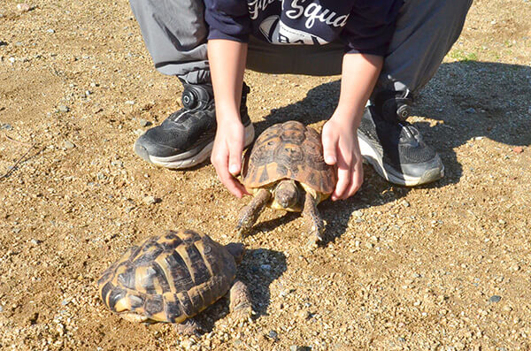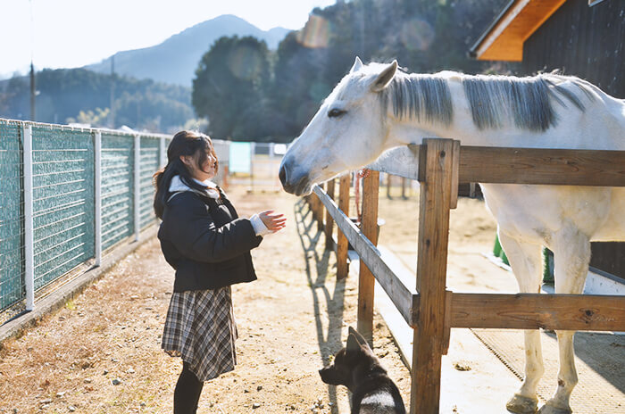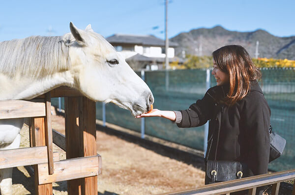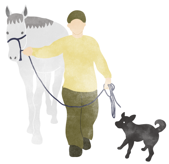 笑顔と優しさがあふれる、 ファームの主役たち。 アポロファームでは、個性豊かな仲間たちが、それぞれの歩幅であなたを待っています。ここへ来るまでの道のりは違っても、今はみんなが自分らしく、穏やかな毎日を過ごしています。ふとした瞬間に見せる愛らしい表情や、言葉のない優しさに触れてみてください。一頭一頭がもつ物語を知れば、会うのがもっと楽しみになるはずです。 かつては競馬場で、たくさんの応援を背に一生懸命走っていたアポロホープ。 お仕事をがんばって、このファームにやってきた今は、とっても優しくて穏やかな顔をしています。 じっと見つめていると吸い込まれそうになる、アポロホープの大きくて透き通った瞳。言葉はなくても、その優しい眼差しとゆったりしたリズムに合わせて一緒に過ごしていると、なんだか心までポカポカしてくるから不思議です。今は新しい暮らしに慣れるまで、ゆっくりと時を重ねているところです。この場所で自分らしく過ごすアポロの毎日を、どうぞ温かく見守ってくださいね。 お母さんの「チロリ」と、やんちゃな息子の「ポロリ」。トカラヤギの親子は、いつも寄り添いながらファームで仲良く暮らしています。二人が大好きなのは、「ハムハム」すること。まるで「ねえねえ、遊ぼうよ!」と話しかけてくれているみたいで、思わず笑顔がこぼれます。無邪気な彼らと触れ合っていると、大人も子どもも心が解き放たれ、自由な気持ちになれるはずです。 ヘルマンリクガメの萬福と松。のんびりしているようで、実は意外と足が早い二人。一生懸命に地面を捉え、自慢のフットワークでずんずんと進む姿は、驚きに満ちています。 大好きな野菜を力強く頬張ったり、ポカポカの陽だまりを見つけてお昼寝したり。 自分のペースを一歩ずつ、たしかに進んでいく二人の飾らない日常を眺めていると、なんだか心まで軽やかな気持ちになれるはずです。 みんなを元気に明るくしてくれる、大切なスタッフの一員が保護犬のクーリ。ファームを見守る「警備隊長」でありながら、その明るさで周りをパッと照らしてくれる、アポロファームの太陽のような存在です。 まっすぐな瞳でしっぽを振って歓迎してくれるクーリの姿を見ていると、「生きてるって楽しい!」とパワーをもらえます。 今日もスタッフの一員として、自慢のフットワークでみんなの笑顔を見守っています。